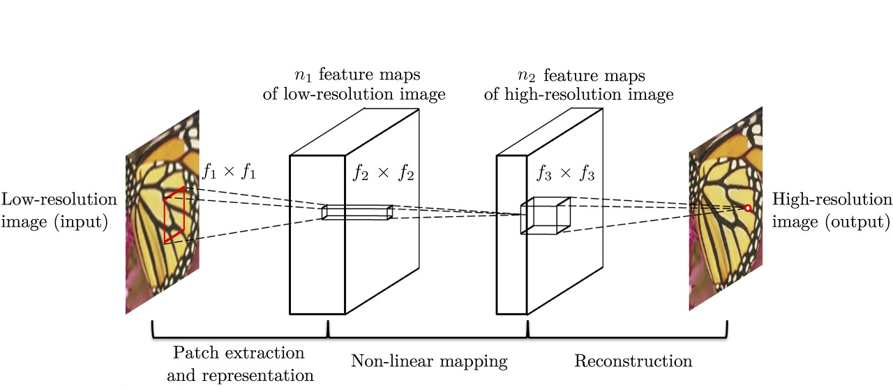 SRCNN은 super resolution에 딥러닝을 처음 적용시켜 좋은 결과를 얻었던 모델이다. 위와 같이 bicubic으로 키운 interpolated low resolution 이미지가 input으로 들어가게 된다.