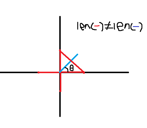 원점에서 빨간 4개의 점까지의 L1 거리는 같습니다. 하지만 하나의 선분을 θ만큼 회전 시키면 더이상 L1 길이가 같지 않습니다. 지금은 선분을 회전 시켰지만 좌표축을 회전 시켜도 L1거리가 달라질 것을 알 수 있습니다. 그러므로 모델의 성능에 영향을 끼칠 것입니다.